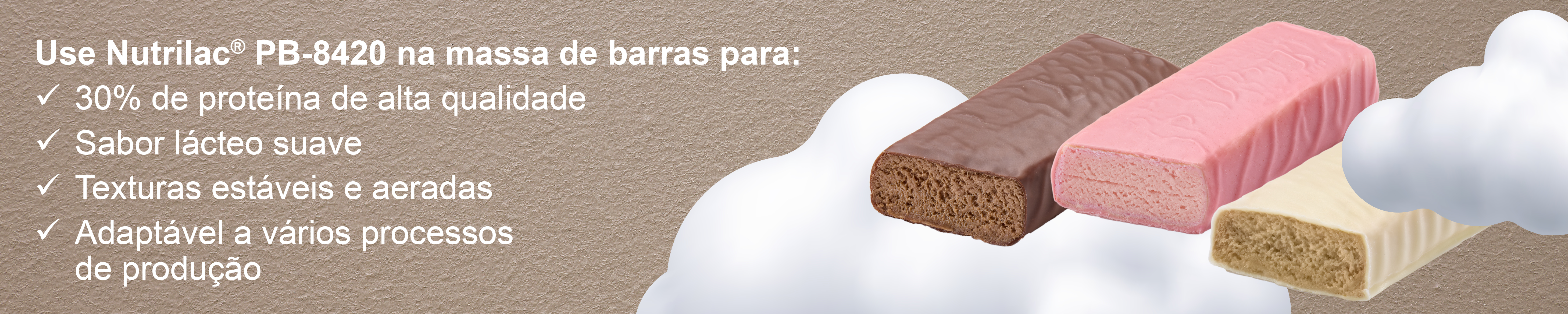 Como parte de nosso portfólio de combinações de proteínas lácteas para a categoria de barras proteicas, Nutrilac® PB-8420 já é bem conhecido por sua versatilidade excepcional nas linhas de produção.