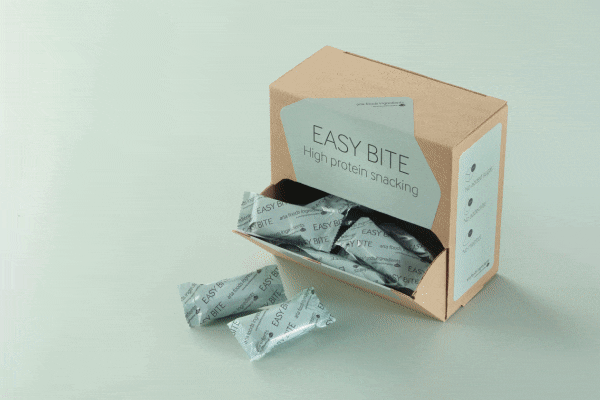 Easy Bite está aqui para servir como inspiração. Feito com apenas oito ingredientes, é uma pequena porção de 18 g com 40% de whey protein, uma demonstração simples da funcionalidade e do sabor superiores do Lacprodan® EasyBar.